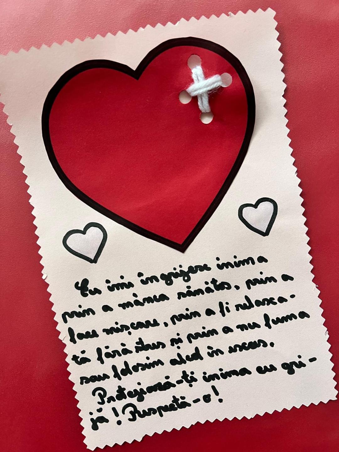 În încheiere, cei mici au realizat mesaje de conștientizare privind importanța sănătății inimii, cu scopul de a transmite celor din jur să fie mai atenți și mai responsabili față de propria sănătate.