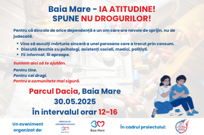 ”Baia Mare - IA ATITUDINE! SPUNE NU DROGURILOR!” - Te invităm să fii alături de noi pe 30 mai 2025, în Parcul Dacia