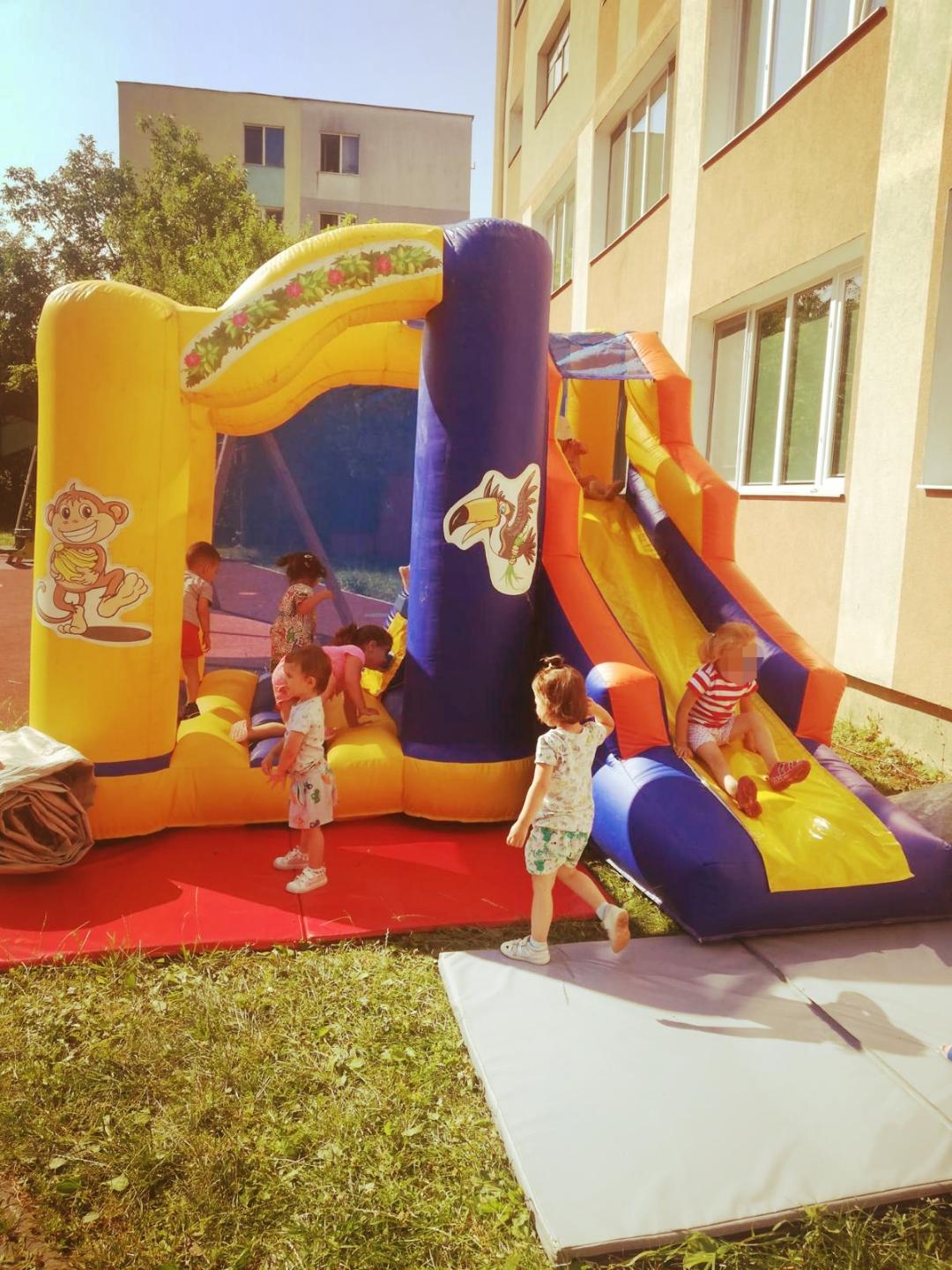 Veselie mare în această perioadă la creșele băimărene, unde, pe langă locurile de joacă minunate din incinta acestora și vremea excelentă, copiii s-au bucurat de tobogane gonflabile.